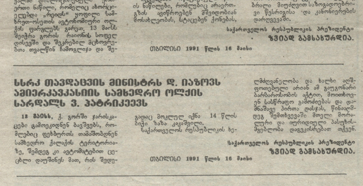 “The whole of Georgia attended the funeral of Zaza Kakashvili, a student from Gori pierced by the bullets of Marshal Yazov’s loyal soldiers—one of the ‘heroes’ of the April 9 tragedy. The savage murder of the young footballer shook Georgians and non-Georgians alike.”