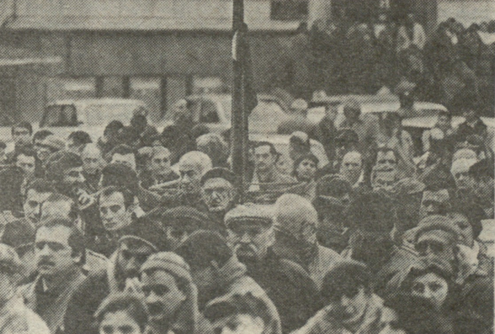 At the end of the rally, the crowd was again stirred when the Student Union president, Mamuka Kachitadze, announced that someone—who identified themselves as “Vine Me Chmaladze,” chairman of the Student Committee—had reported to the Georgian government that the Student Committee members had participated in the rally to support the rector and demand the resignation of Zviad Gamsakhurdia, Chairman of the Supreme Council. The students were outraged once more, formed a column, and marched toward the government building to protest this misinformation.