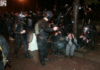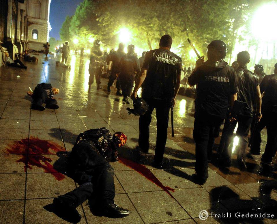 26 მაისის დადგომისთანავე, რამდენიმე წუთში რუსთაველზე მყოფი აქციის მონაწილეები წყლის ჭავლით, ცრემლმდენი აირითა და რეზინის ტყვიებით დაშალეს. პოლიცია დემონსტრანტებს ფიზიკურადაც უსწორდებოდა. ოფიციალური მონაცემებით, მიტინგის დაშლის დროს დაშავდა 37 ადამიანი, მათ შორის, 8 პოლიციელი, 1 ჟურნალისტი და 27 სამოქალაქო პირი.