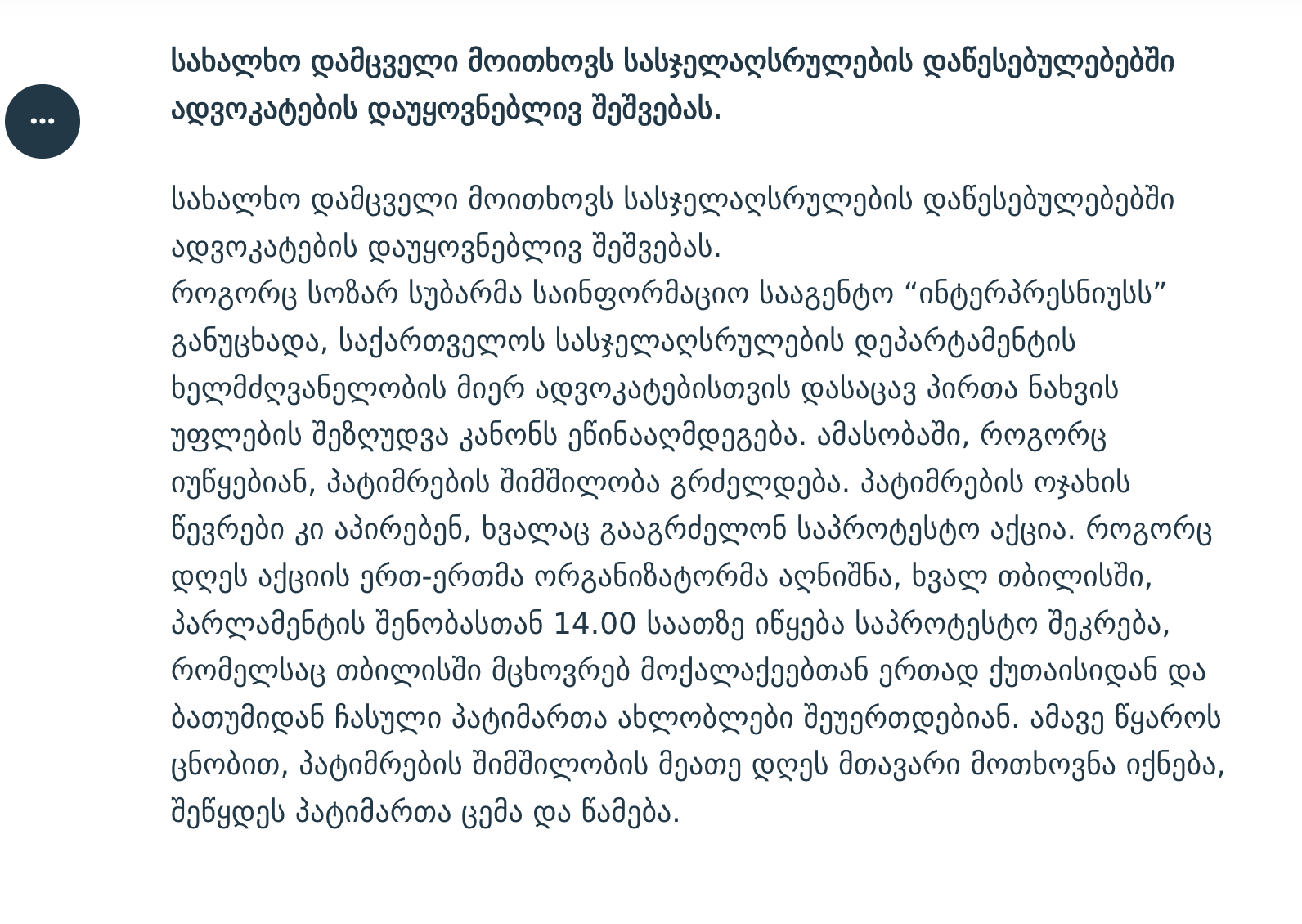 შეწყდეს პატიმართა წამება და გაუმჯობესდეს მათი სოციალური პირობები