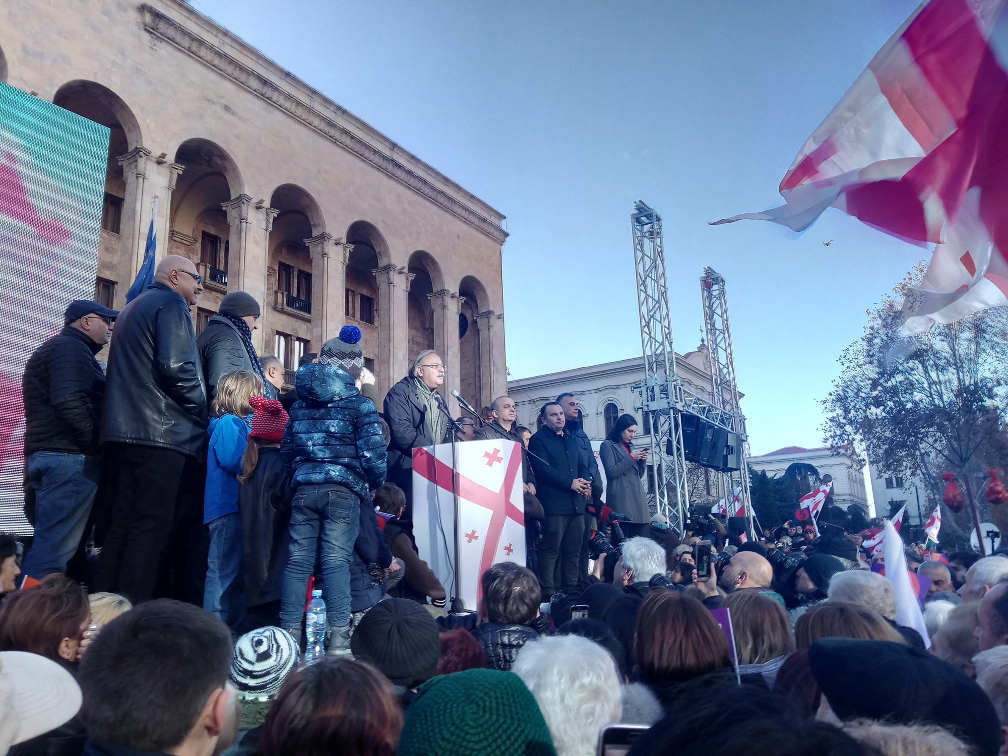 2018 წლის 2 დეკემბერს პარლამენტის შენობის წინ გაერთიანებულმა ოპოზიციამ გამართა აქცია. შეკრებილებმა, მათი აზრით, დარღვევებით ჩატარებული საპრეზიდენტო არჩევნების შედეგები გააპროტესტეს, რომლის მეორე ტურში სალომე ზურაბიშვილმა გრიგოლ ვაშაძე დაამარცხა. ამიტომ ოპოზიცია ვადამდელ საპარლამენტო არჩევნებს ითხოვდა.