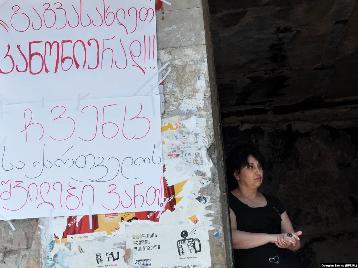 კვამლით გამურული შენობის აივნებზე ჩანდა წარწერები: „SOS“, “ნუ გაგვასახლებთ უკანონოდ“, “ჩვენც საქართველოს შვილები ვართ” და სხვ.