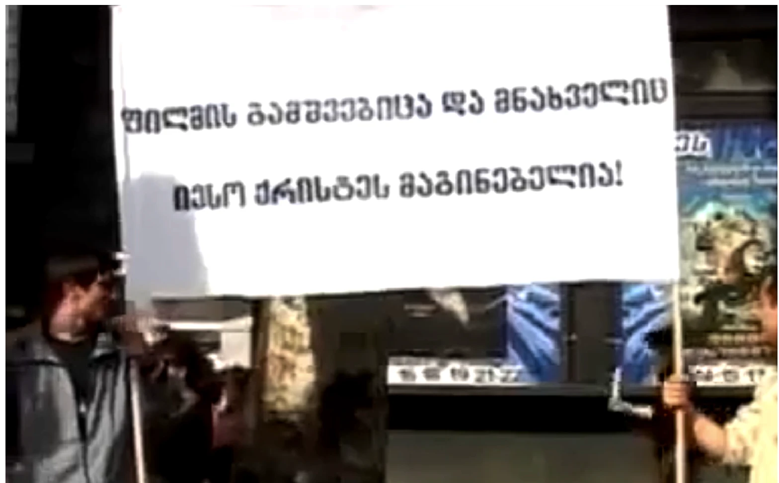 2006 წლის 18 მაისს რუსთაველის გამზირზე კინოთეატრ “რუსთაველთან” ათობით ადამიანი შეიკრიბა ფილმის გასაპროტესტებლად. კინოთეატრის წინ შეკრებილი აქციის მონაწილეებს ხელში ეჭირათ ტრანსპარანტები წარწერით “ამ ფილმის ნახვა ქრისტეს მეორედ ჯვართცმაა“. “ფილმის გამშვებიცა და მნახველიც იესო ქრისტეს მაგინებელია”.