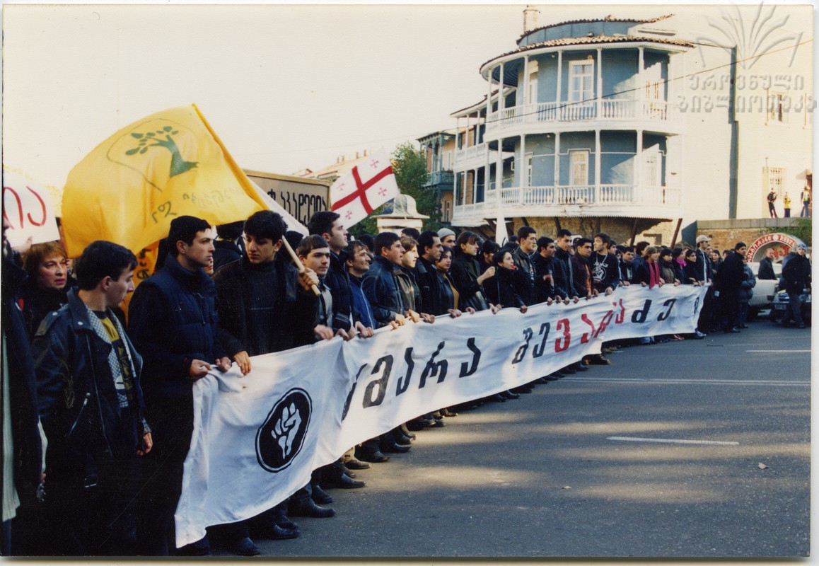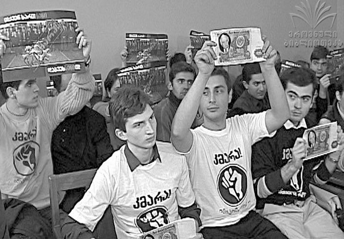 თბილისის სხვადასხვა უმაღლესი სასწავლებლების რამდენიმე ასეულმა სტუდენტმა 2003 წლის 14 აპრილს სახელმწიფო კანცელარიის შენობასთან საპროტესტო აქცია გამართეს პრეზიდენტისა და მთავრობის გადადგომის მოთხოვნით. ისინი უნივერსიტეტის შენობიდან სახელმწიფო კანცელარიასთან მივიდნენ, სადაც დაწვეს საბჭოთა საქართველოს დროშები, ბანერები, რომლებზეც პრეზიდენტ შევარდნაძის, სახელმწიფო მინისტრ ავთანდილ ჯორბენაძისა და ახალი ბლოკის სხვა ლიდერების პორტრეტები ეხატა. აქციის მონაწილეებს პლაკატებზე ეწერათ “კმარა”. ამ აქციით დაიწყოს მოძრაობა “კმარას” აქციები, რომელიც მომდევნო თვეებში პერმანენტული გახდა.