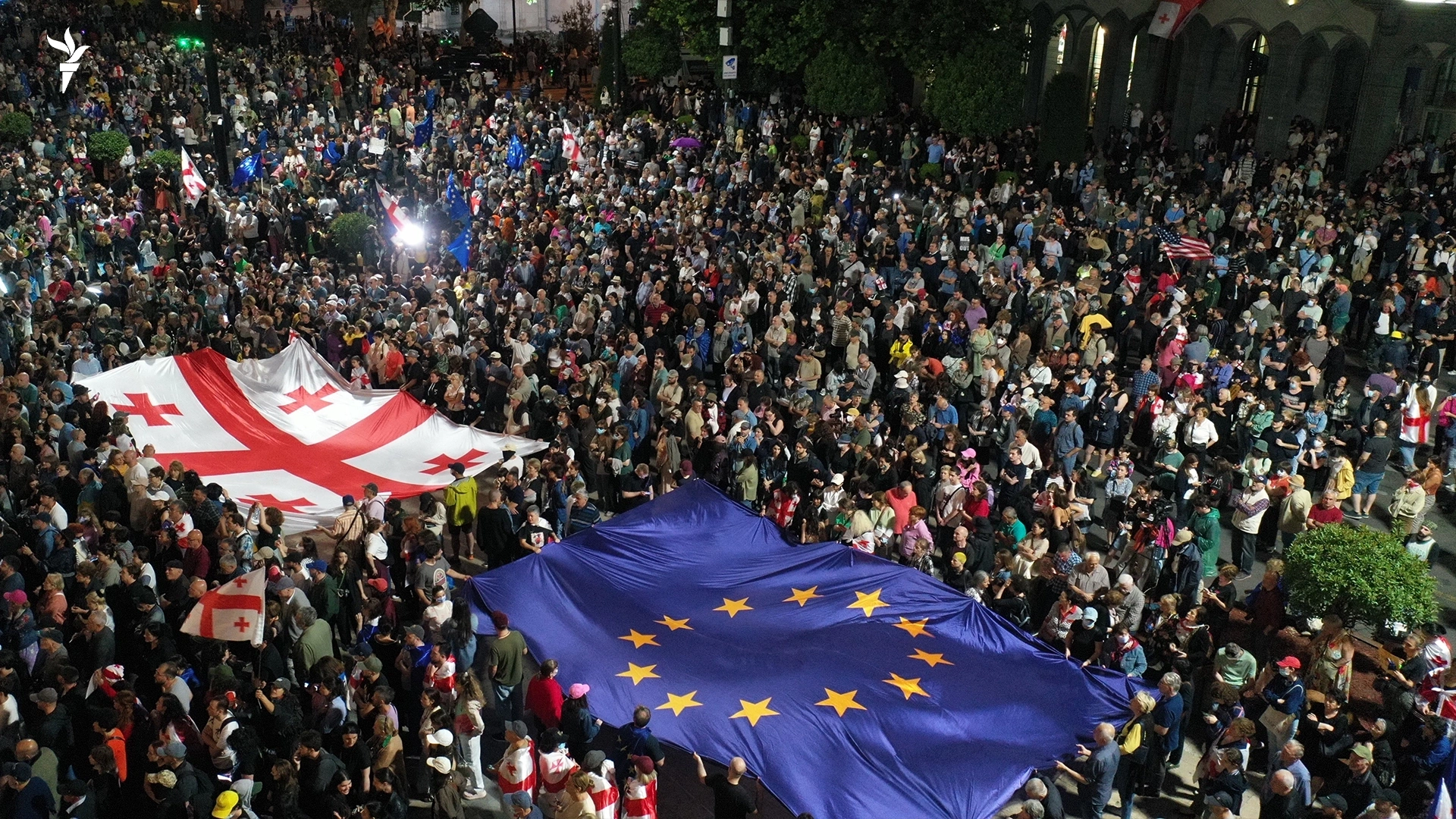 ათასობით დემონსტრანტმა მალე პარლამენტთან გადაინაცვლა, გადაიკეტა რუსთაველის გამზირი, მათი ნაწილი შენობის თაღებთან აღმართულ რკინის ჯებირებთან დადგა და მუშტებითა და ქვებით მორიგეობით და უწყვეტად აბრახუნებდა. ევროკავშირისა და საქართველოს დროშებით, იმავე საღამოს, პრემიერ-მინისტრის განცხადებაზე პასუხად, ხალხი სპონტანურად შეიკრიბა გორში, ზუგდიდში, ბათუმში, ქუთაისში, თელავში, ფოთში.