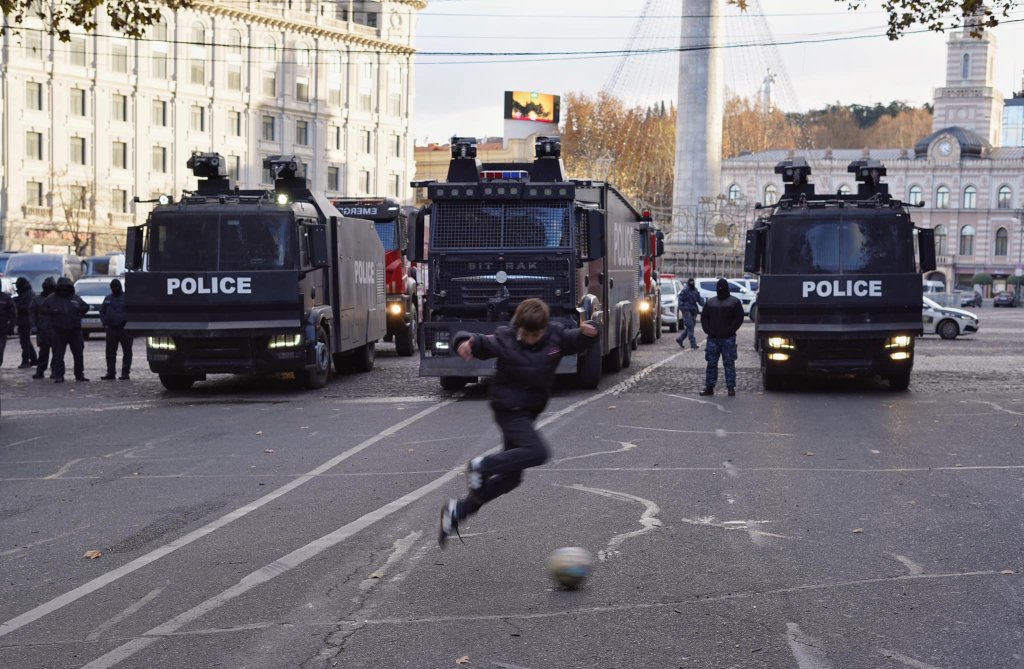დეკემბერში ქუჩებში გამოჩნდნენ შავ ფორმაში ჩაცმული ადამიანები. ისინი ძალადობდნენ აქციის მონაწილეებსა და ჟურნალისტებზე. თბილისის სხვადასხვა ნაწილში იმ დღეებში მათი მონაწილეობით რამდენიმე ინციდენტი მოხდა. ერთი იყო 7 დეკემბერს, როცა პირდაპირ ეთერში მუშაობის დროს „TV პირველის“ გადამღებ ჯგუფს, მაკა ჩიხლაძესა და გიორგი შეწირულს, ნიღბიანი პირები პარლამენტის მიმდებარე ქუჩაზე ფიზიკურად გაუსწორდნენ. მიუხედავად იმისა, რომ თავდამსხმელთა იდენტიფიცირებაც თავად ტელევიზიამ მალე შეძლო, არავინ დასჯილა.