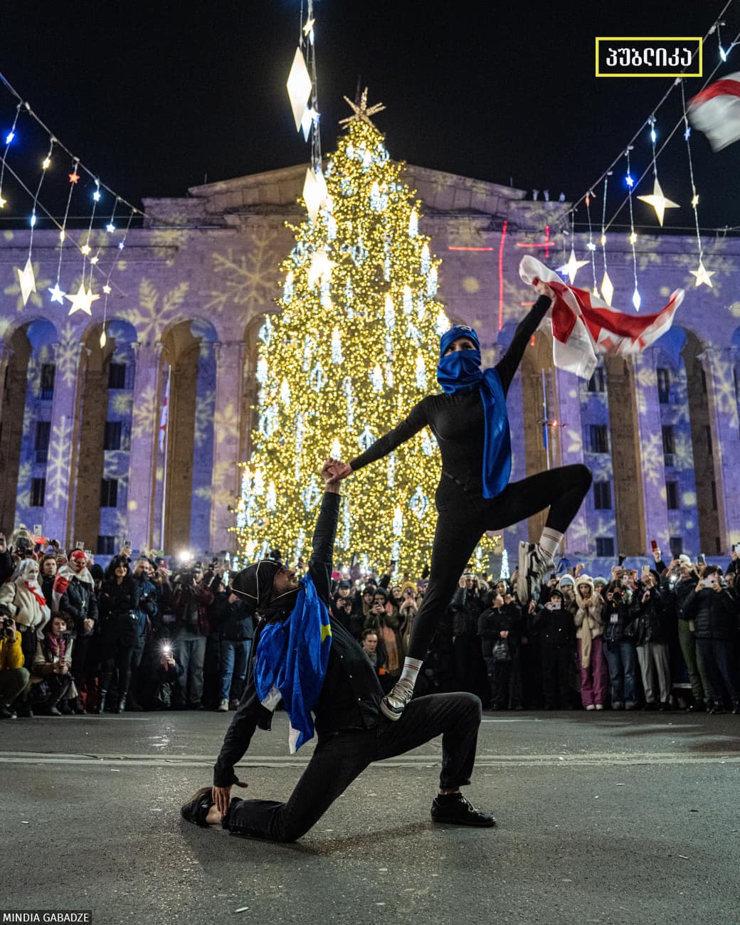 დემონსტრანტები იმთავითვე განწყობილნი იყვნენ, რომ 2024 წლის 31 დეკემბრის საღამოსაც რუსთაველის გამზირზე გავიდოდნენ. ამიტომ ახალი წლის დადგომის აღნიშვნაც ერთად გადაწყდა. საღამოს რვა საათიდან დაიწყეს მზადება. მთელ რუსთაველის გამზირზე, მაგიდების ერთმანეთთან შეერთებით, მოაწყვეს გრძელი, თითქმის 900 მეტრი სიგრძის სუფრა, რომელიც სახლებიდან მიტანილი ტკბილეულით, ხილითა თუ კერძებით დაიფარა და ერთად შეხვდნენ ახალ წელს; შემდეგ – შობასაც. თბილისის მერიამ კი საახალწლო კონცერტი წინმსწრებად ჩაწერა ცერემონიალების სასახლეში (პრეზიდენტის ყოფილ რეზიდენციაში, ავლაბარში) და ხელისუფლებისადმი ლოიალურად განწყობილი რამდენიმე ტელევიზიის ეთერში გაუშვა.