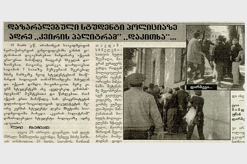 31 მაისს სტუდენტები ეროვნულ მუზეუმთან ავიდნენ, თუმცა პოლიციამ შეკრებილები ძალის გამოყენებით დაშალა. ერთ მონაწილეს, ლერი ჩხეტიანს ცხვირის ძვალი გაუტყდა და ტვინის შერყევა მიიღო. დანარჩენი აქციის მონაწილეები ისევ დედა ენის ძეგლთან დაბრუნდნენ.