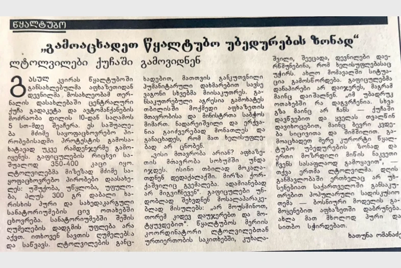 1998 წლის იანვარში წყალტუბოში განსახლებულმა აფხაზეთიდან დევნილებმა (იმდროინდელი პრესა მათ ლტოლვილებად მოიხსენიებს) თერნალის დასახლებაში ცენტრალური ქუჩა გადაკეტეს და ავტომანქანების მოძრაობა 10-დან საღამოს 5 საათამდე შეაჩერეს. დაახლოებით 350-400 ადამიანი იყო შეკრებილი. მათი პროტესტის მიზეზი მძიმე სოციალური პირობები გახდა: უშუქობა, უწყლობა, უფულობა, სამასგრამიანი დაბალი ხარისხის პური და სახედაკარგული სანატორიუმების ცივ ოთახებში ცხოვრება. მათ შეშის ღუმელების დადგმის უფლება არ ჰქონდათ, ამიტომ ითხოვდნენ ნავთის ღუმელებსა და საწვავს. დევნილები ამბობდნენ, რომ მათთვის განკუთვნილი ჰუმანიტარული დახმარებით სავსე ვაგონი სხვებმა მიისაკუთრეს. მათ განსაკუთრებული აგრესია გამოხატეს თბილისში მოქმედი აფხაზეთის მთავრობისა და მინისტრთა საბჭოს მიმართ.
